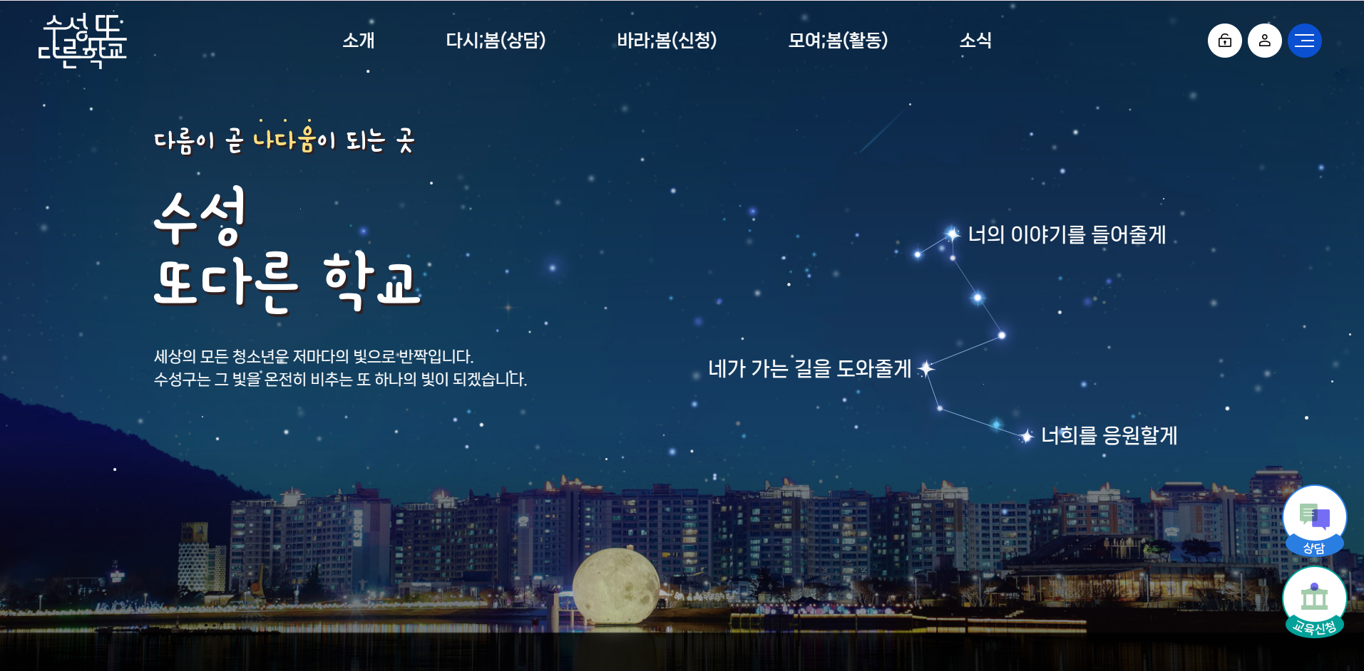 학교밖청소년을 위한 지역사회 학교 "수성또다른학교" 홈페이지 운영을 알립니다, 홈페이지